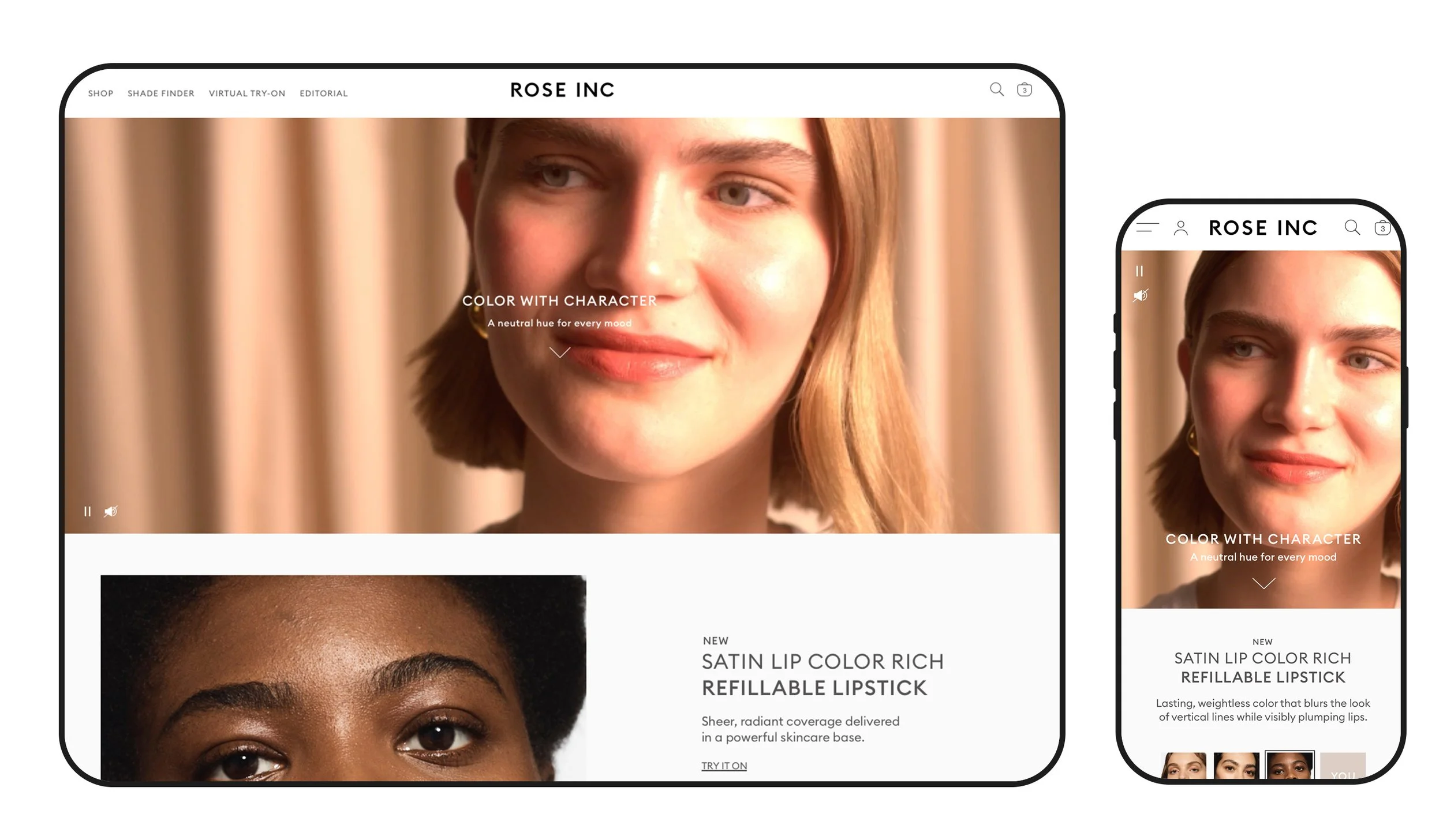 Designed and conceptualized the landing page for Rose Inc’s lipstick launch, introducing users to the product’s innovative formula and sustainability. With a primary focus on mobile accessibility, this meticulously crafted landing page guides users through an immersive journey to discover their unique "persona," each named after the lipstick shades.